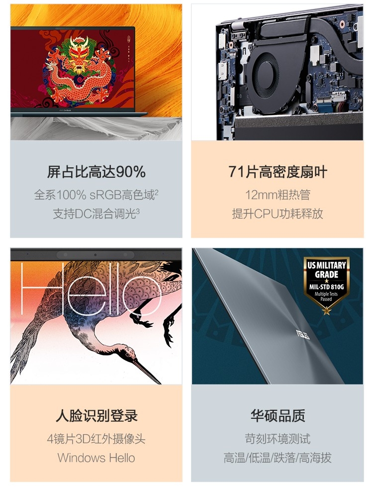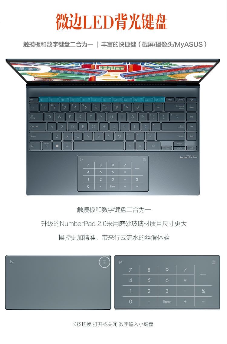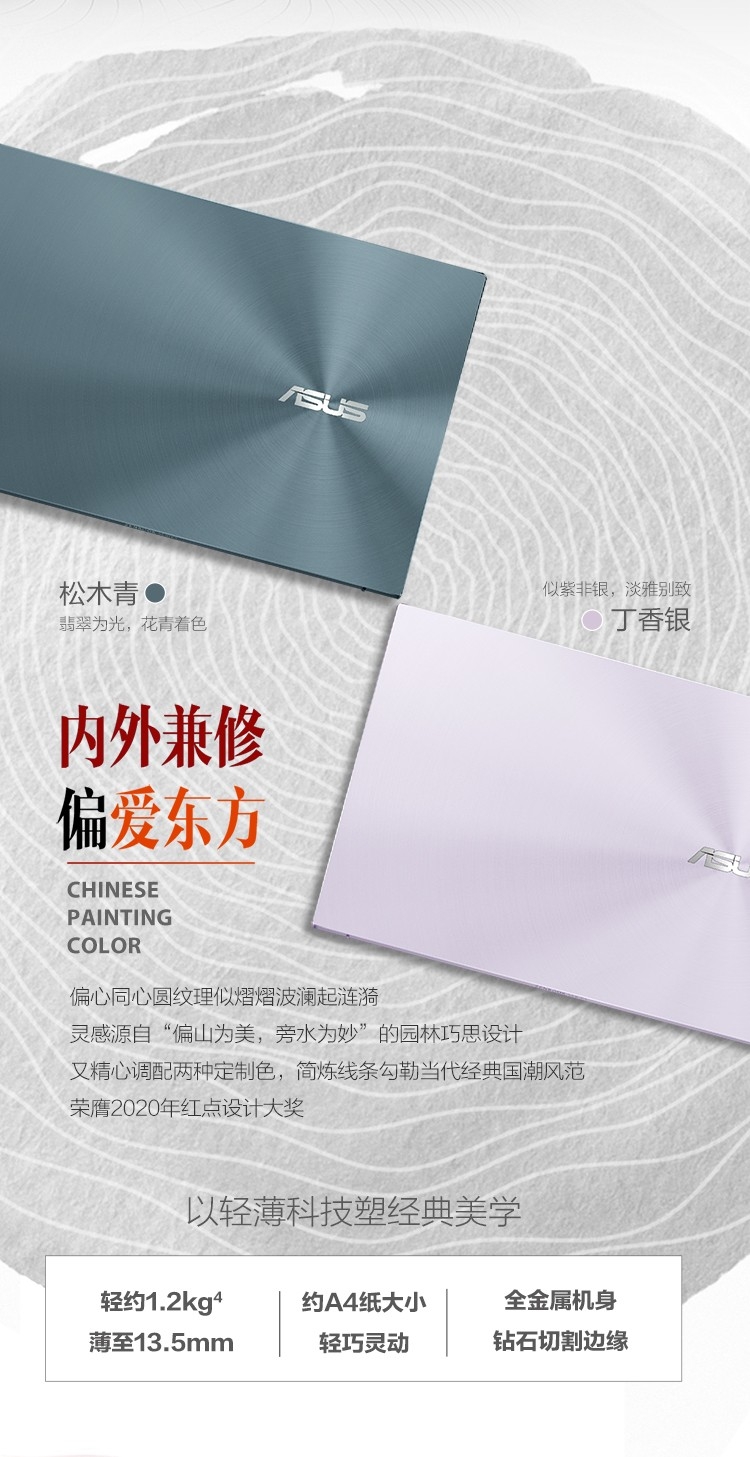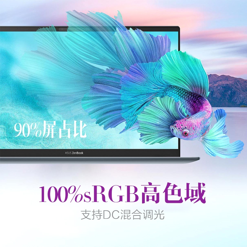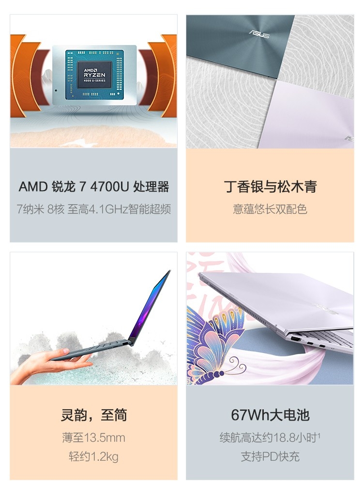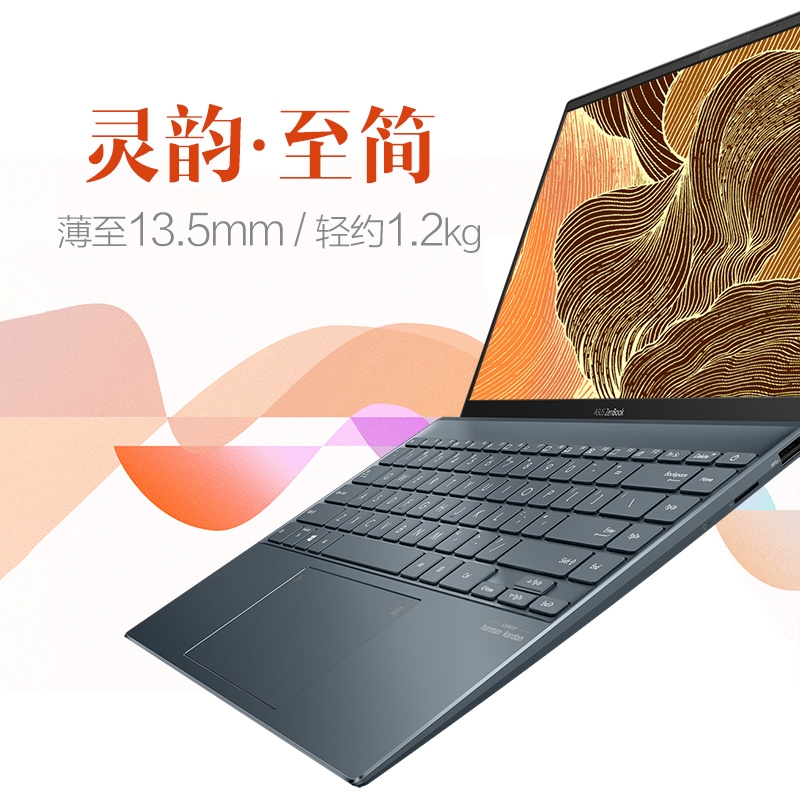 华硕(ASUS)灵耀14锐龙版 7nm8核 13.5mm超轻薄14英寸商务办公手提笔记本电脑(R7 16G 512G 高色域)松木青