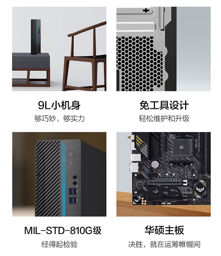 华硕(ASUS)品牌台式机S500商用游戏家庭办公学生电脑全套整机迷你mini主机 21.5英寸|I5-10400/8G/512G固态