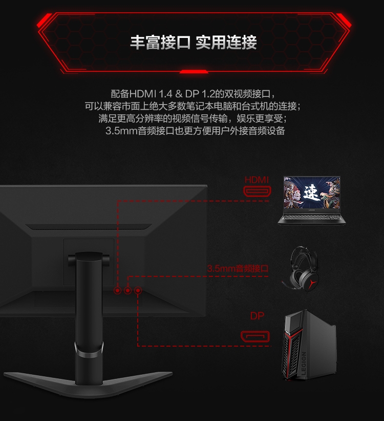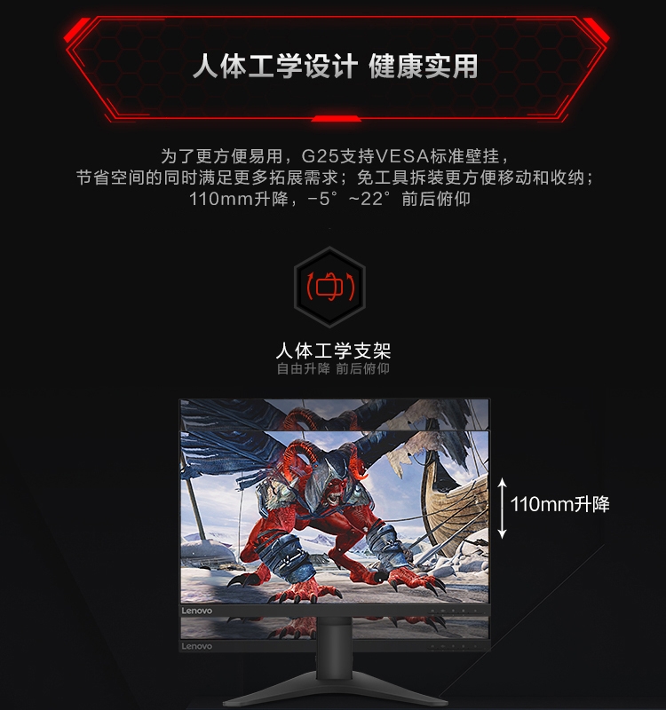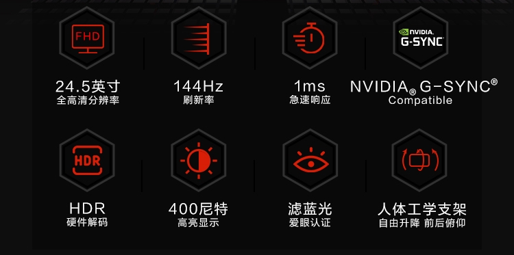 猎魂 24.5英寸 144Hz 1ms响应 HDR解码 升降俯仰 可壁挂游戏电竞显示器G25-10